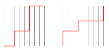 grid. Find the number of such paths that change direction exactly four times, as in the examples shown below.